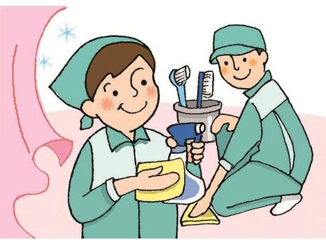 廊下などの床モップ掛け、共用洗面台・トイレのお掃除が主なお仕事です。